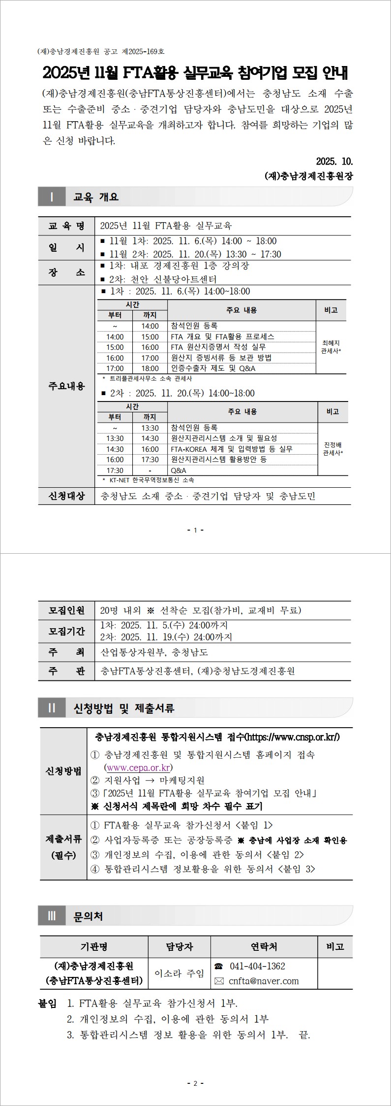2025년 11월 FTA활용 실무교육 참가기업 모집